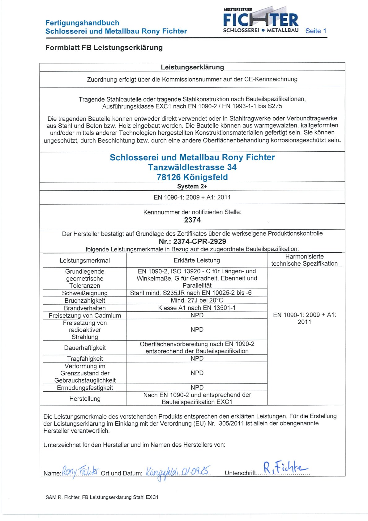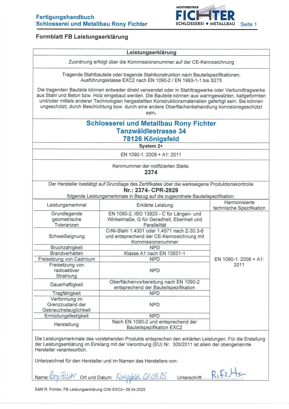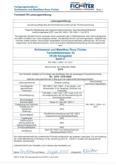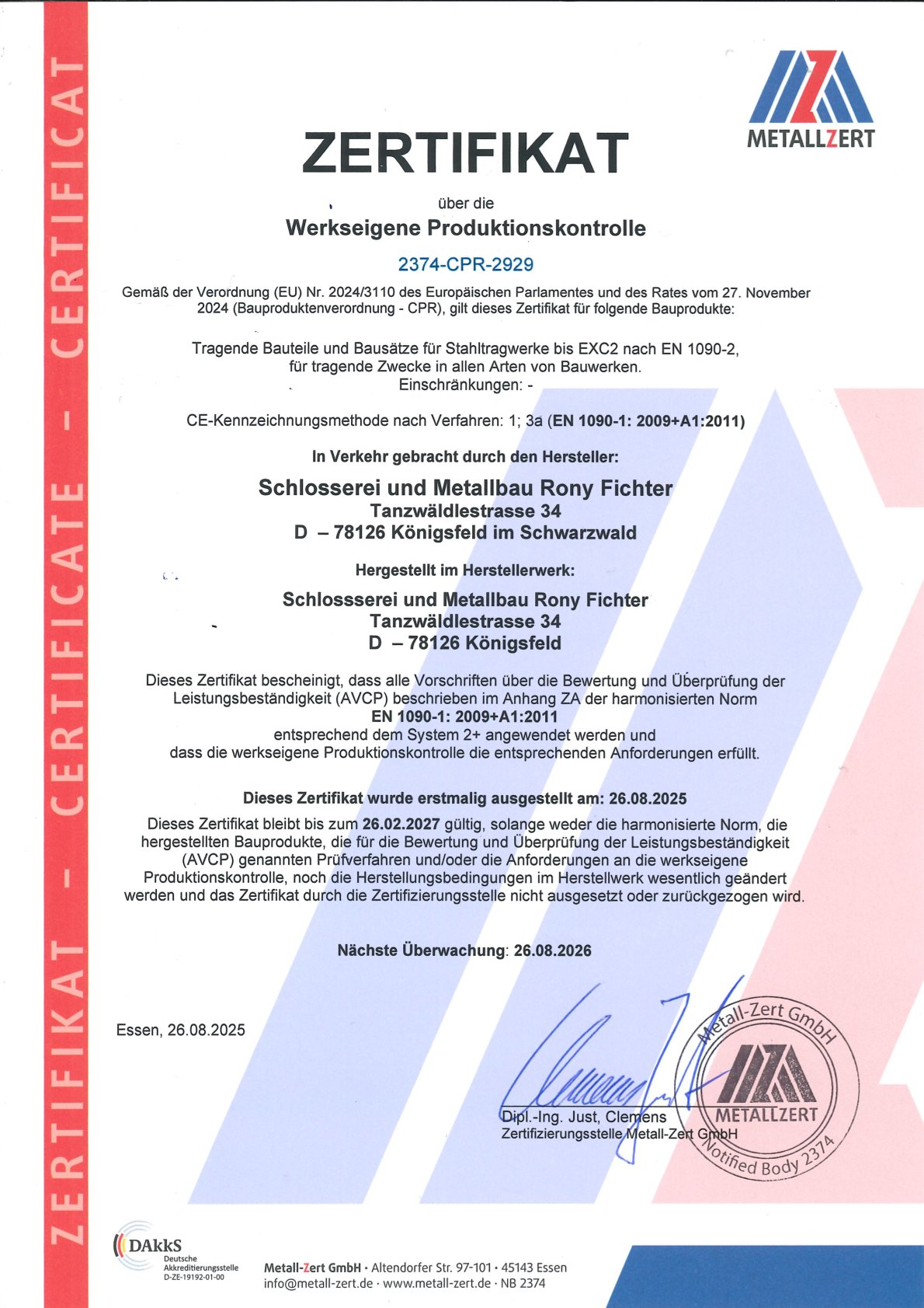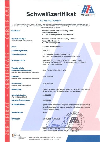 Daher ist unser Unternehmen seit Ende August 2025 nach DIN EN 1090 zertifiziert.